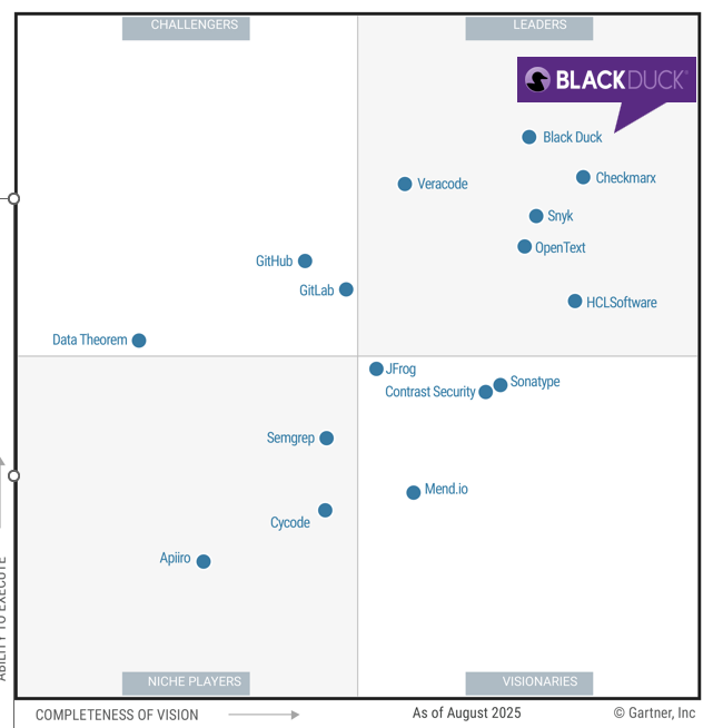 A Black Duck foi novamente reconhecida como Líder no Quadrante Mágico do Gartner® de 2025 para Application Security Testing (AST), marcando o oitavo ano consecutivo nessa posição.